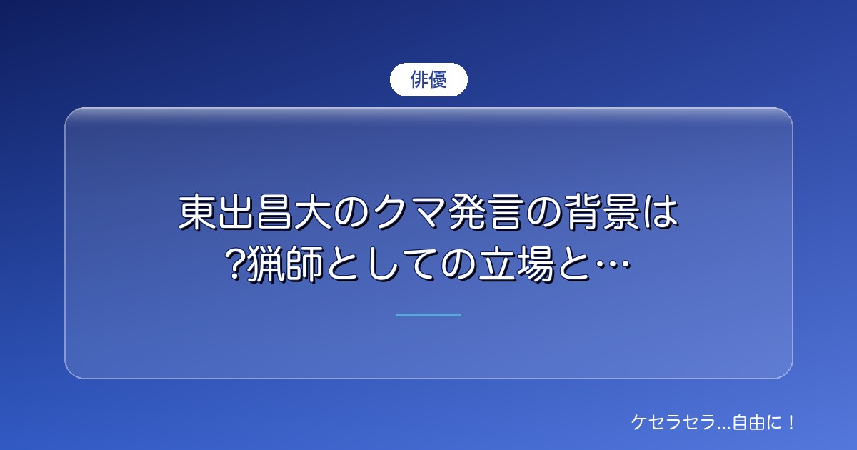 この記事では、東出昌大さんのクマに関する発言内容と、猟師としての活動実態、そして批判の理由について詳しくお伝えします。